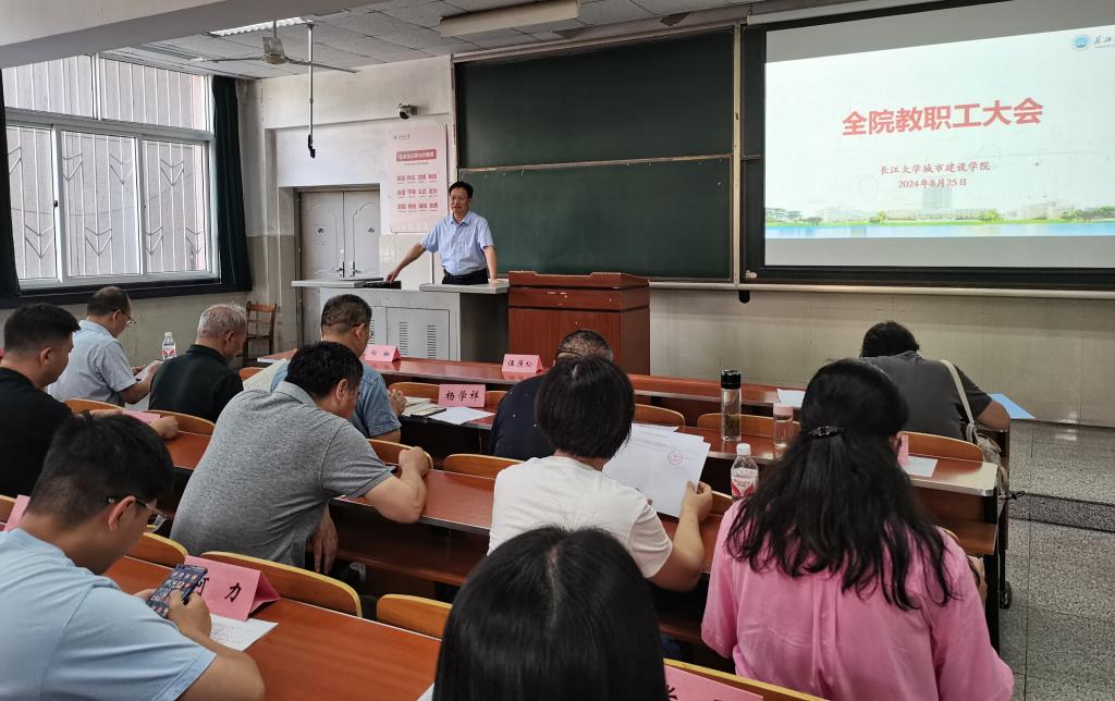 (通讯员 蔡威威)8月25日下午,学院在主教107室召开新学期全院教职工大会,安排部署新学期工作。副院长肖桃李、黄向阳,副书记周洁如,院长助理陈星星、亓宪寅及全体教职工参加会议,会议由院党委书记谌姿主持。