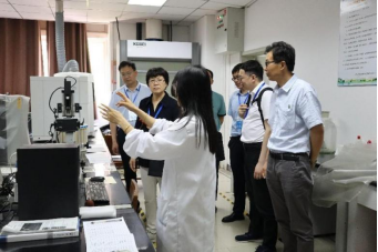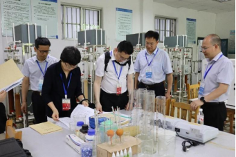 专家考察实验室并认真查看学生实验报告