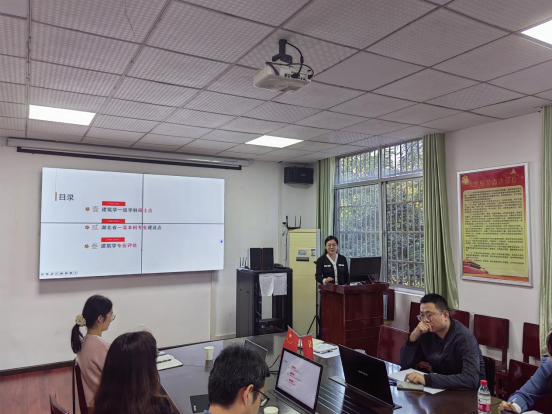 建筑系主任徐齐帆以“对标与发展”为题,从建筑学一级学科硕士点、湖北省一流本科专业建设点、建筑学专业评估三个方面指明建筑学未来重点工作。徐主任强调要通过提升教学科研实力、创新人才培养方案、积极参加知名学术会议等方式来解决专业发展中的难题与困境,当前全系上下团结一致,为顺利完成建筑学专业评估做好充分准备。