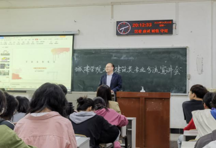 在西校区三教T1教室,七教107和204教室分别召开土木类、建筑类和土木国际专业分流介绍会。校友王海,副院长肖桃李、院党委副书记秦良斌、院长助理黄文雄以及各系主任、教师代表分场次参加活动。