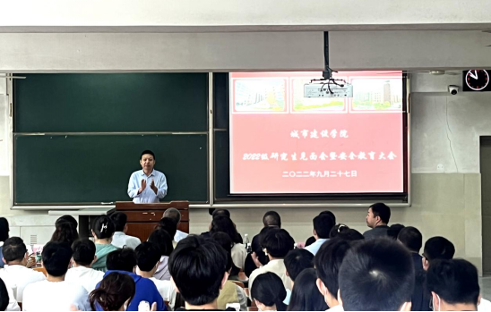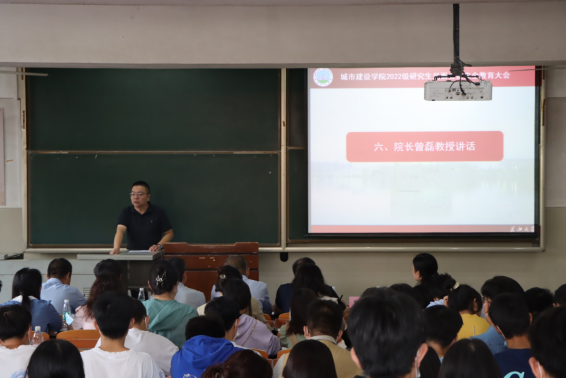 于长江大学主教107召开了22级研究生见面会暨安全教育大会。学院院长曾磊、院党委书记孙涛、副院长叶长才、土工与工程管理系副主任赵云峰、建筑与城乡规划系副主任徐齐帆、给排水科学与工程系主任黄向阳、科研事务办公室主任张瑞等领导老师,以及分团委书记兼研究生辅导员盖东芳、学工办主任周喆等辅导员和2022级全体新生参与此次会议。会议由院党委副书记秦良斌主持。