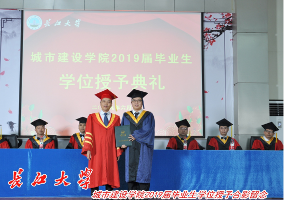 学位授予环节,朱业宏教授为学院硕士毕业生授予了学位,杜国锋教授为学院本科毕业生授予了学位。