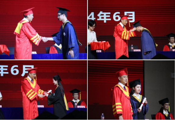 学位授予环节,学院副院长肖桃李教授为毕业生正衣冠,长江大学党委副书记、副校长杜国锋教授为2024届毕业生授予学位。鞠躬握手、拨穗正冠、扶正流苏,毕业生们一一与杜书记合影。现场庄重深情的仪式感让大家终身难忘。