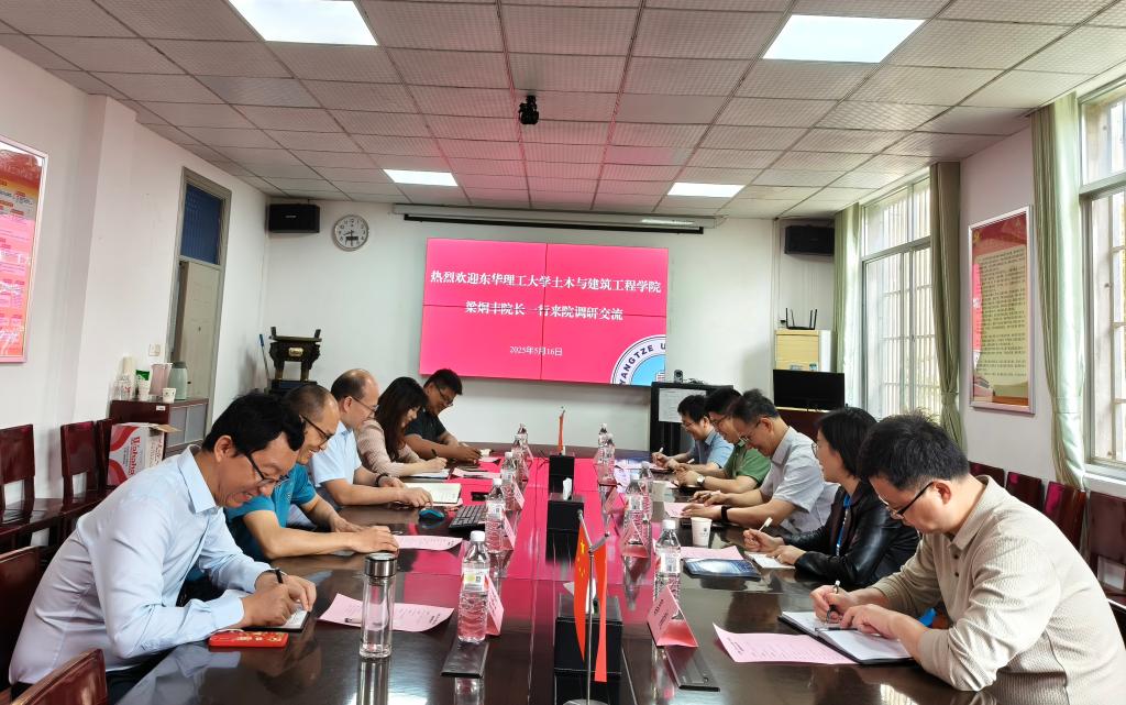 (通讯员 蔡威威)5月16日上午,东华理工大学土木与建筑工程学院梁炯丰院长一行五人来院调研,围绕学科建设、人才培养、师资队伍建设等工作开展交流。学院院长肖桃李、党委副书记周洁如及相关系室负责人参加座谈,会议由院长肖桃李主持。