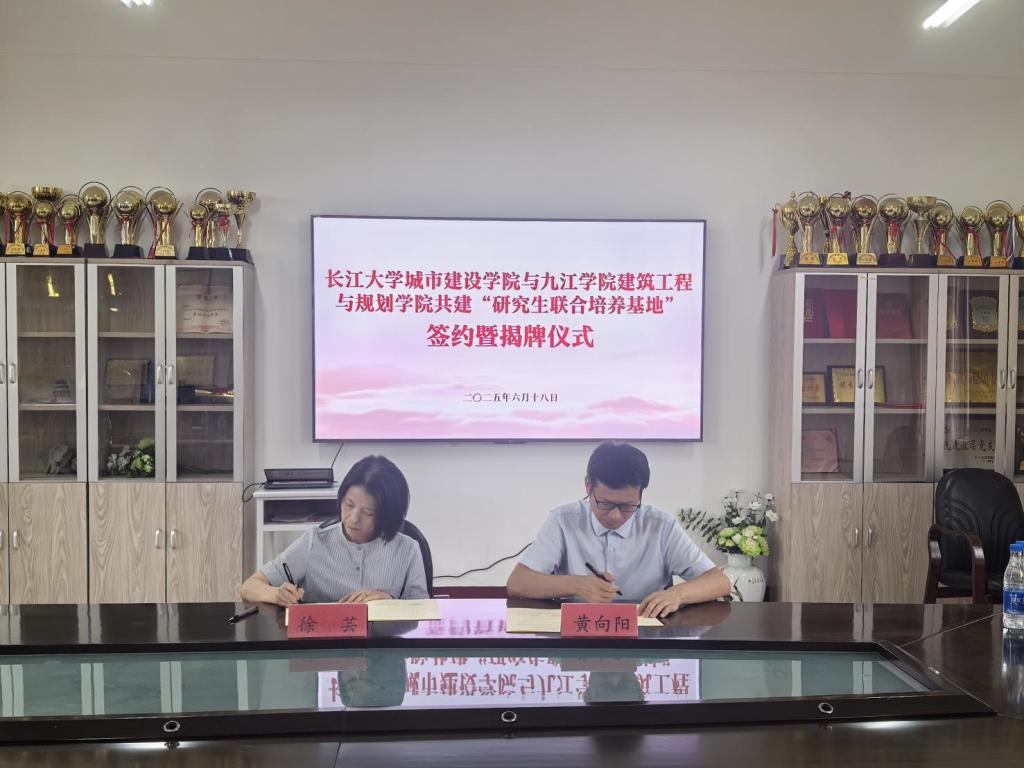 黄向阳副院长与九江学院建筑工程与规划学院副院长徐芸围绕土木水利硕士学位点申报经验、兼职硕导、土木工程中外合作办学、产学研合作等方面进行了深入交流,签署了硕士研究生联合培育基地的合作协议,并为基地隆重揭牌。同时,财神娱乐场app