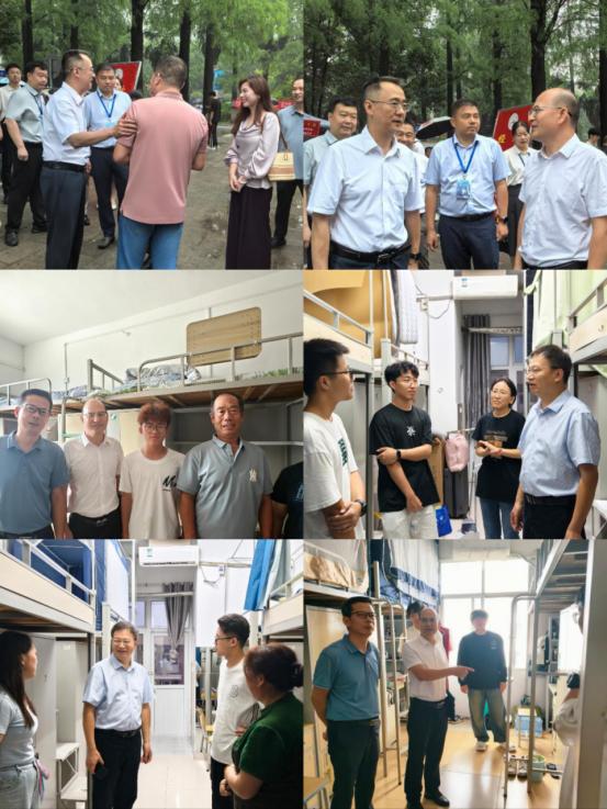 院长肖桃李院长、副院长黄向阳、学院党委副书记周洁如等领导来到迎新报到点,查看报到流程进展,与志愿者、新生及家长亲切交流,询问新生报到是否顺利、是否有困难需要协助,并叮嘱工作人员务必做好服务保障。随后,领导们与辅导员一同深入新生宿舍,关切新生住宿环境是否适应、生活物资是否齐全,针对家长关心的课程安排、实践活动等问题逐一耐心解答,同时鼓励新生尽快融入集体,树立明确学习目标,在大学中全面提升自我。