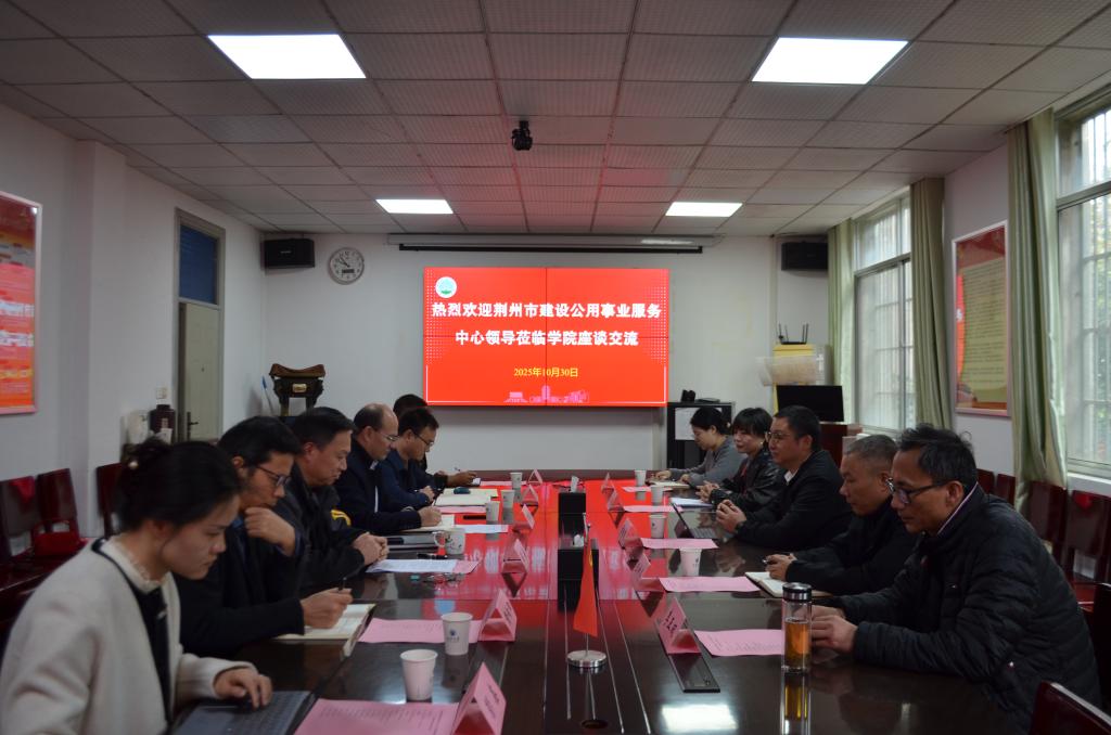 与荆州市建设公用事业服务中心校地合作签约仪式在9教208会议室顺利举行。荆州市建设公用事业服务中心副主任、党总支副书记黄映爽一行五人到访,财神娱乐场app