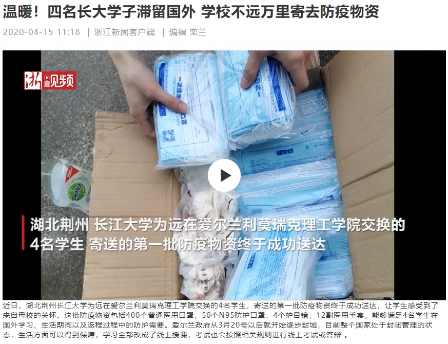 国外疫情期间学校给交换生寄送防疫物资