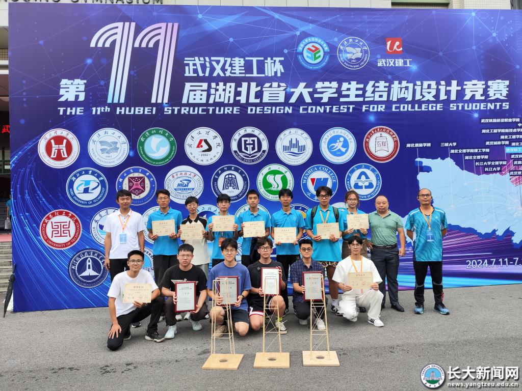 第十一届湖北省结构设计大赛由湖北省教育厅、湖北省建设教育协会主办,武汉轻工大学承办,武汉建工集团股份有限公司协办的重要赛事。该项赛事是由教育部、财政部首次联合发文批准的全国9大学科A类竞赛之一,是土木工程学科培养学生创新意识、团队精神和工程实践能力的最高水平的学科性竞赛。本次比赛有华中科技大学、武汉大学、武汉理工大学等全省29所大学,97支队伍同台竞技。我校共有4支队伍参赛,全部获得奖项。