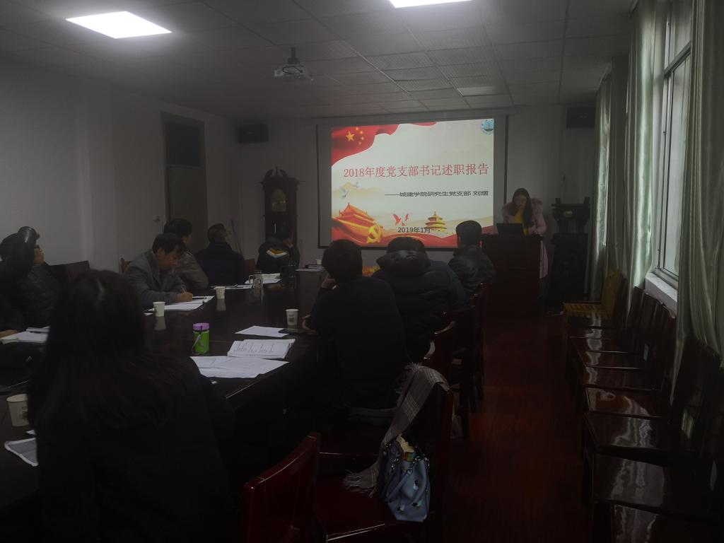 根据组织部要求,学院党委在2019年1月16日 下午2:00在9#208会议室召开了支部书记党建工作述职。全体党员委员、党建秘书、支部委员(学生除外)参加了此次述职会议。会议由徐联同志主持。土木工程工程管理教工联合党支部书记黄文雄老师、建筑城规给排水教工联合党支部书记朱国庆老师、研究生支部书记刘熠老师、土木工程工程管理学生联合党支部书记颜学俊老师、建筑城规给排水学生联合党支部书记周喆老师依次做了汇总。汇报的主要内容有:支部基本情况、本年度支部主要工作以及工作中存在的不足及展望等。