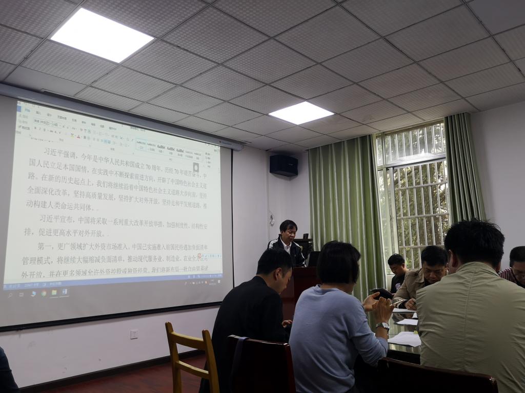 党委中心组在学院会议室召开5月理论学习(扩大)会议,全体教职工参加学习,会议由党委书记徐联主持。