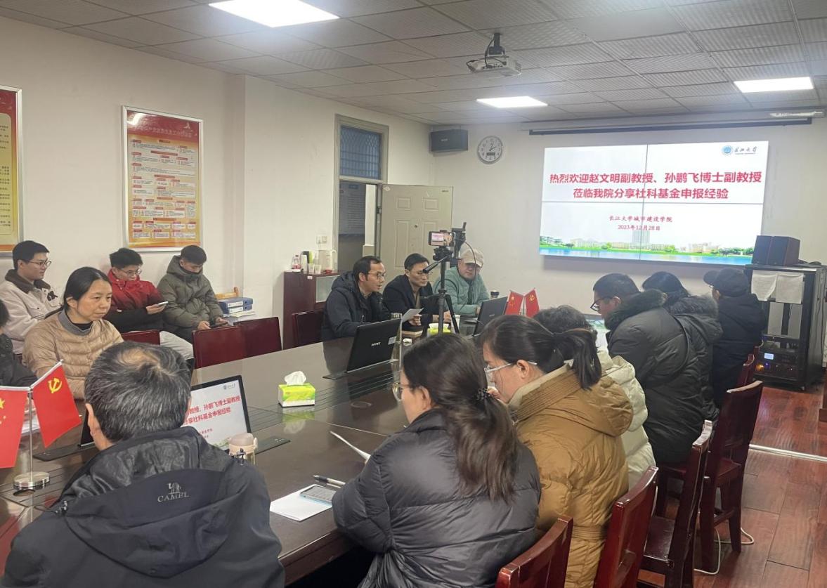 财神娱乐场 社科基金申报经验分享会圆满完成 为了进一步提升学院教师申报国家社科基金项目的积极性、主动性、凝聚共识、增强信心,财神娱乐场app 特邀请长江大学艺术学院团队赵文明副教授和孙鹏飞博士副教授,主讲教师团队近三年连续获批国家项目3项。该讲座由陈星星副教授主持,于2023年12月28日下午14:00,在东校区9教208会议室举行。城乡规划系、建筑学系的所有教师和部分研究生均参加了此次讲座。 赵文明副教授和孙鹏飞博士副教授结合自身申报经历,对社科基金项目选题、申报书填写、课题设计论证及研究成果、研究基础、参考文献介绍等方面,进行了深入浅出的讲解。 陈星星副教授代表学院对两位老师的分享和指导表示感谢。他指出,本次讲座既是经验分享会,也是课题动员会。希望老师们高度重视、积极申报,力争在2024年国家社科基金申报工作中取得突破。 本次国家社科基金项目申报经验分享专题讲座是提升学院教师科研育人水平,开展有组织科研活动的系列举措之一。通过这次讲座,老师们更加明确了国家社会科学基金申报的注意事项、撰写细节、着力方向,坚定了申报课题的信心。