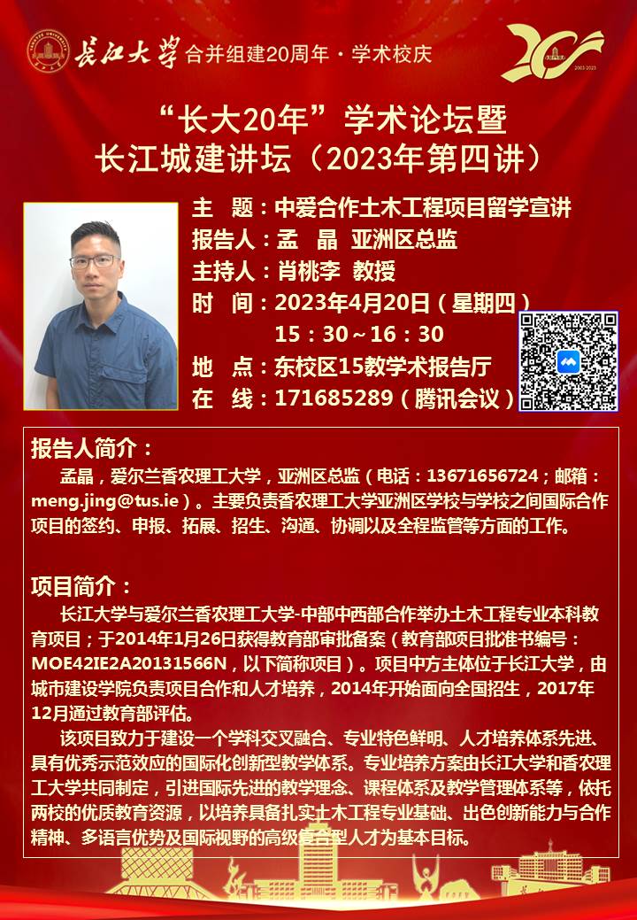 “长大20年”学术论坛暨长江城建讲坛(2023年第四讲):中爱合作土木工程项目留学宣讲
