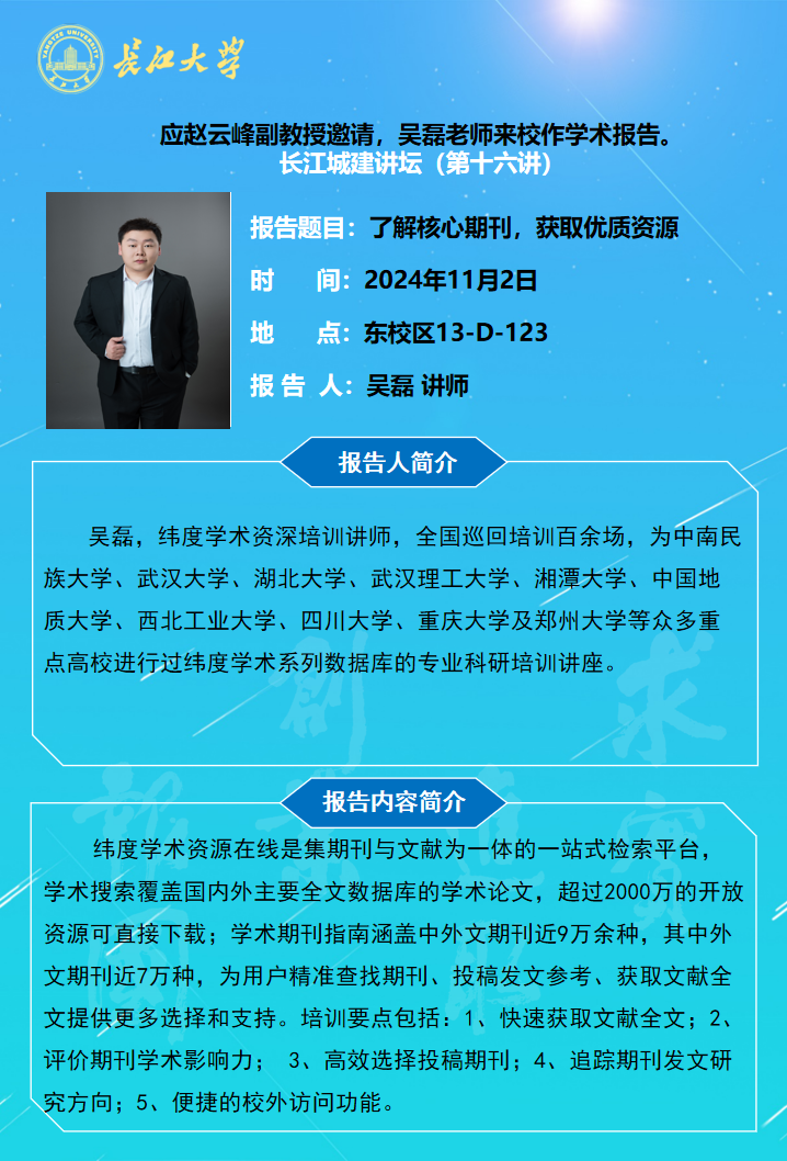长江城建讲坛2024年第十六讲:了解核心期刊,获取优质资源
