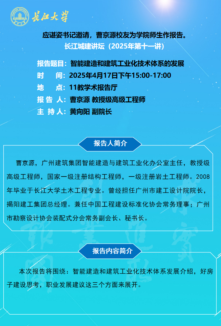 长江城建讲坛2025年第十一讲:智能建造和建筑工业化技术体系的发展
