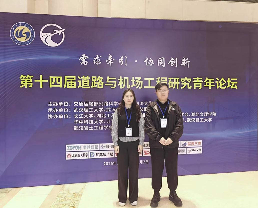 协办的第十四届道路与机场工程研究青年论坛在武汉成功举办。本次论坛围绕道路机场工程材料、结构设计与智能养护等前沿方向开展交流,吸引了来自全国的专家学者和青年科研人员,共同探讨行业发展的新趋势与新技术。学院蔡凤杰、张宏飞两位教师参加了本次论坛。