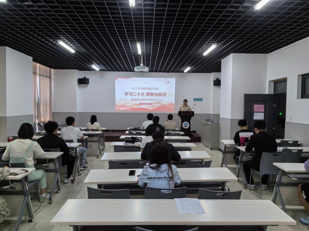 于东校区22栋A124举行团干部思政技能大比武。活动由学院团委副书记刘安琪老师主持,并邀请计科学院蒋代运老师担任评委。