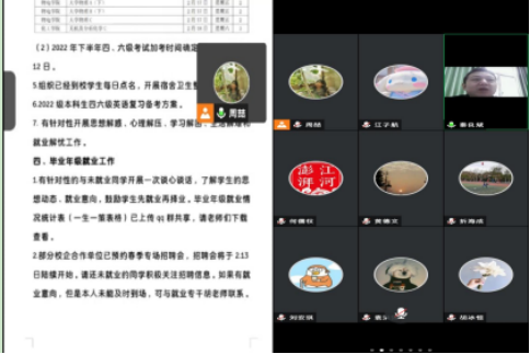 院党委副书记秦良斌在总结开学注意事项后,提出了自己对工作的几点思考,即要积极引导学生直面疫情、学业、家庭、社会中的各类问题;辅导员在落实各项工作时,要畅通沟通渠道;要形成优良班风,促进学生考级、考研及就业。“新的一年让我们继续奋斗,奔跑出更好的工作成绩和育人成效!”他最后讲到。