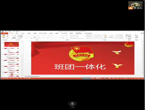此后,电子信息工程学院康玮老师通过腾讯会议的方式为同学们讲解班团一体化建设理论与实践。康老师主要为大家介绍了班团一体化的基本概念,强调了班团一体化的重要性,展示了班级和团支部建设运行中的主要现状和问题,明确了新形势下的班团一体建设的实施途径。同时,康老师提出了班团关系的新界定,班团目标的一体化设计,班团运行的一体化推进,班团干部的一体化设置和班团管理的一体化统筹。康老师的讲解为财神娱乐场app