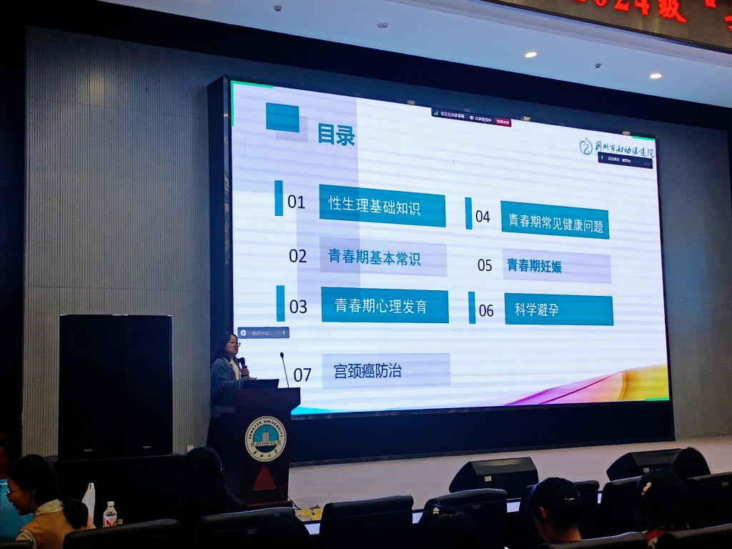 2024级女生参加“豆蔻年华,扬帆起航”女生讲座活动。本次讲座邀请荆州市妇幼保健院妇保科郭妍医生作为主讲人。