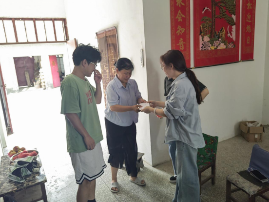 家访过程中,工作小组为每个受访家庭送上慰问金及生活物资,围绕学生成长环境、家庭收入来源及现实诉求,与学生和家长面对面交流。辅导员向家长系统讲解国家奖助学金、助学贷款、勤工助学及临时困难补助等资助政策,确保家长“听得懂、记得住、用得上”。同时,老师们还向家长反馈了学生在校期间的学业成绩、综合表现及思想动态,并针对两名精准帮扶学生家长普遍关心的考研升学、就业规划等问题进行具体指导。