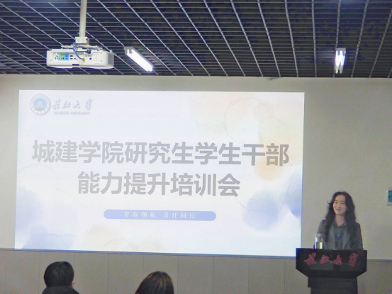 在22栋124会议室举办研究生骨干培训会。学院分团委书记盖东芳老师担任主讲人,2025级全体研究生班委及寝室长参加培训。