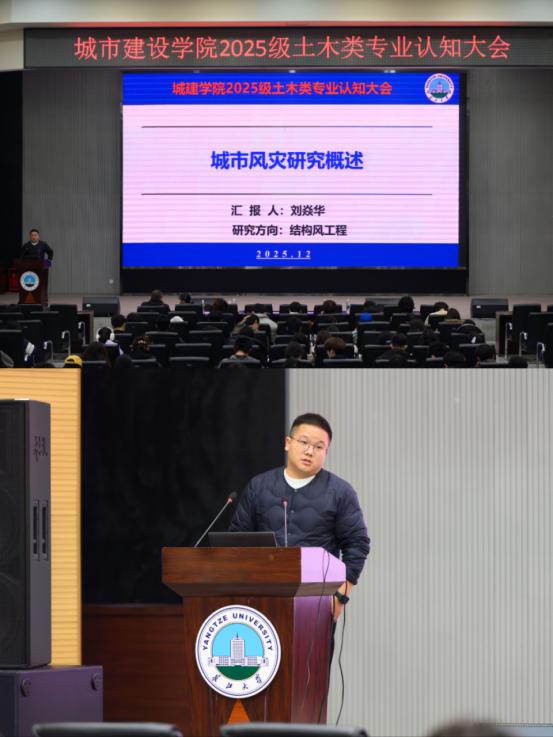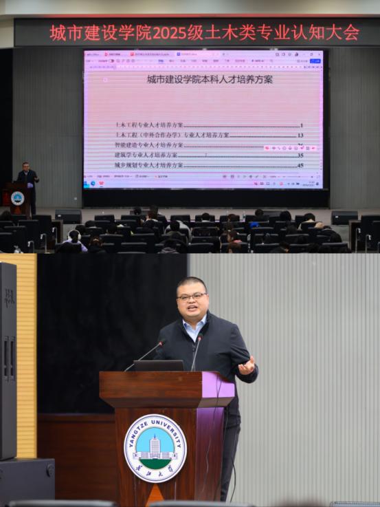 在西校区农科大楼1058报告厅举行2025级土木类专业认知大会,学院多位骨干教师到场分享专业研究成果与学业规划建议。