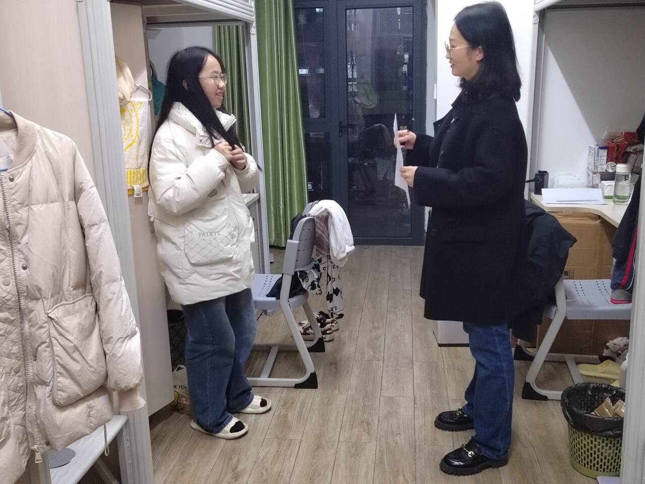 学院领导及辅导员深入学生宿舍,与同学们面对面交流,了解生活需求,排查安全隐患,确保假期校园平稳有序。