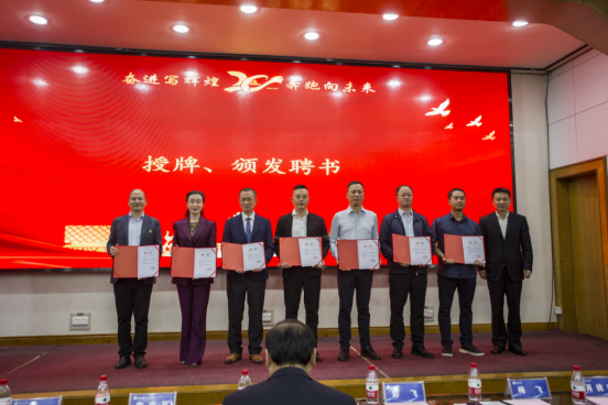 校友会成立文件,并主持了揭牌仪式和颁发聘书环节。学院校友会首任会长谌姿,副会长肖桃李、眭立、卢卫东、邢超、贺翔、邹鹏程、李雄飞,秘书长周洁如,副秘书长李先华、周莉、靳方倩上台接受聘书。