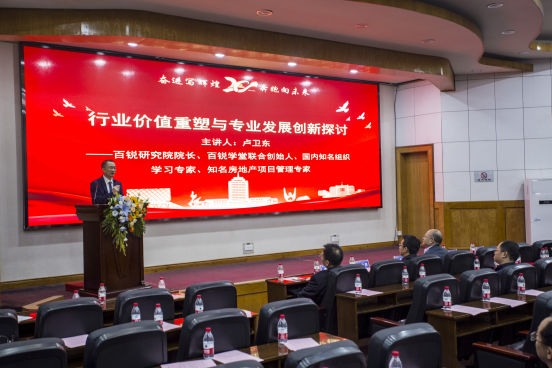 88级校友、百锐研究院院长卢卫东作题为“行业价值重塑与专业发展创新探讨”的行业发展论坛主旨报告,他对房地产及土建行业的健康有序发展给出了判断和建议,并对土木工程等专业前景表示充满信心。