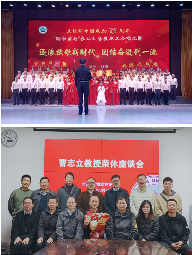 学院通过丰富多彩的活动,积极推进师德师风建设成效,增强学院凝聚力。学院师生积极参与排球比赛鼓劲呐喊助威,男排取得五战全胜的骄人成绩;以庆祝新中国成立75周年为契机,组织全院80余名教师参加“踏歌前行”长江大学教职工合唱比赛,一举夺得校歌组第二名;工会组织春游活动,让老师们在工作之余享受春日的惬意温馨;组织教职工荣休仪式,举办曹志立、柯昌君、姚金星、马宏、南新军教师荣休座谈会,增强荣休教师幸福感,提振青年教师使命感,激发全体教师荣誉感;邀请校内外优秀教师开展讲座,组织青年教师积极参加教学观摩,助力教师教学水平提升。通过创新活动形式,丰富活动内容,让师德师风建设效果更加凸显。